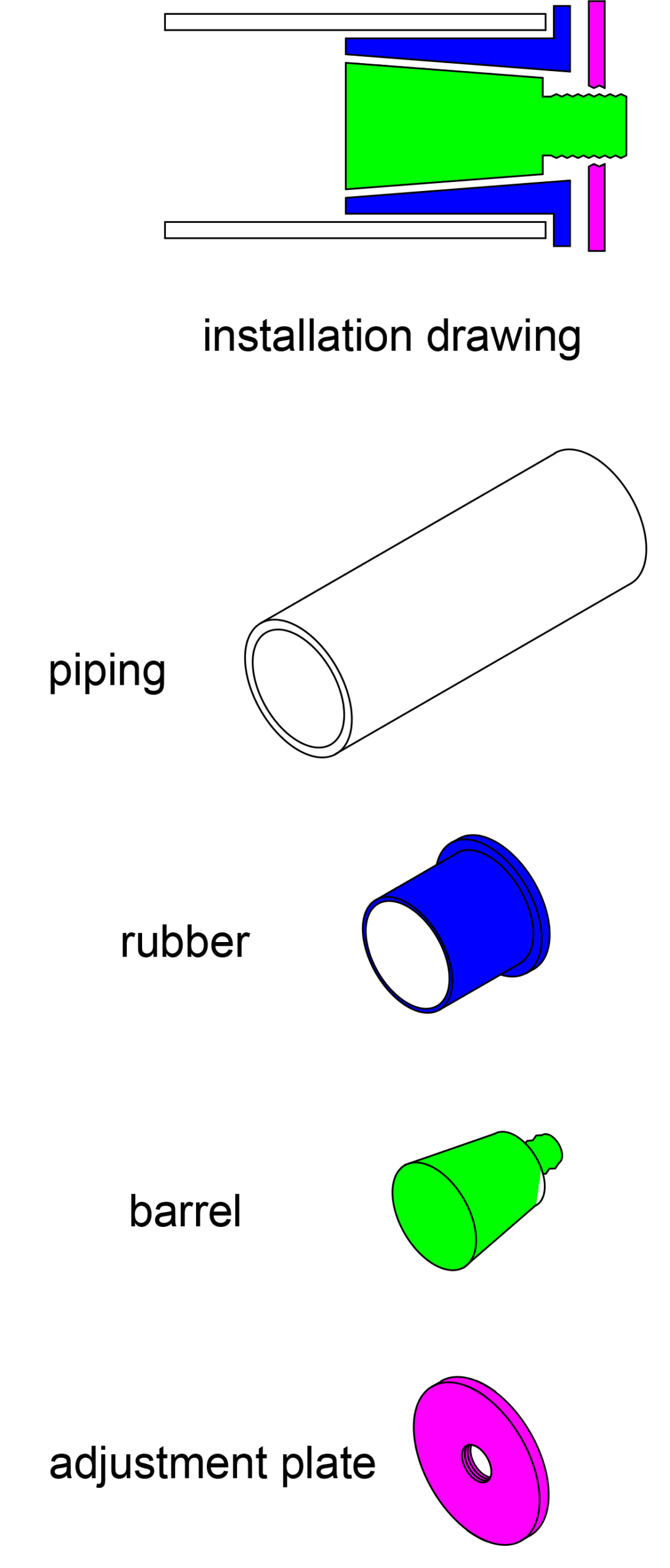 4.After use, rotate the adjustment plate in the opposite direction and push it forward; this separates the cylinder from the rubber, causing the rubber to contract so the product can be easily retrieved from the pipe.